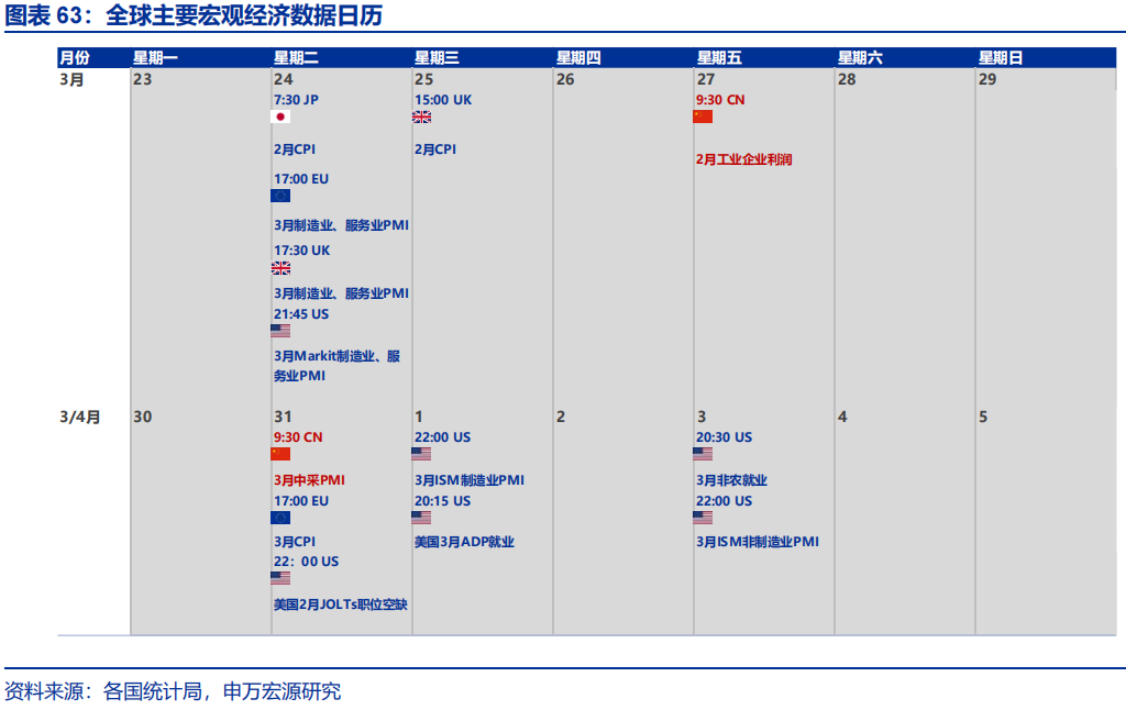 美联储3月例会基调偏鹰,2月美国PPI强于市场预期。美联储3月例会按兵不动,但点阵图、经济预测传递偏鹰信号,市场对美联储年内降息预期下修;美国2月PPI强于市场预期,食品、能源是主要动力;欧日央行3月例会维持利率不变,欧央行大幅上修通胀预测。