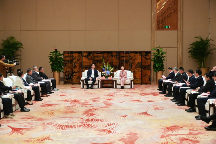 赵龙代表省委、省政府对考察团一行表示欢迎,并简要介绍了福建经济社会高质量发展情况。他说,当前福建正因地制宜发展新质生产力,把培育壮大重点产业链作为重要抓手,加快打造“555X”产业集群,全力推动数智全面赋能、绿色低碳转型,在中国式现代化建设中奋勇争先。希望大家充分发挥企业家、科学家、投资人优势,进一步关注福建、投资福建,更好实现互利共赢。福建将持续打造市场化、法治化、国际化、便利化一流营商环境,落实服务企业“四通四到”机制,全力支持各类企业在闽发展壮大。