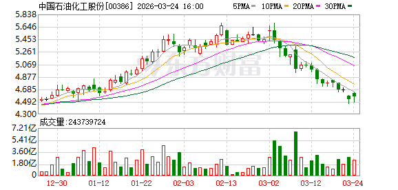 3月23日收盘,中国石化A股股价报6.04元/股,总市值达6815亿元。