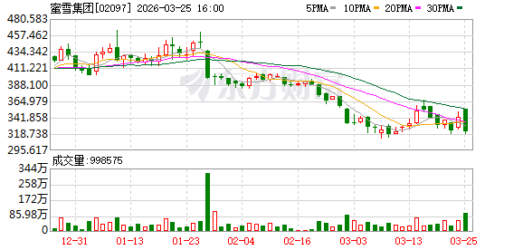 资本市场给出正面反馈,3月24日收盘,蜜雪集团报341.8港元/股,上涨5.95%,总市值接近1300亿港元。