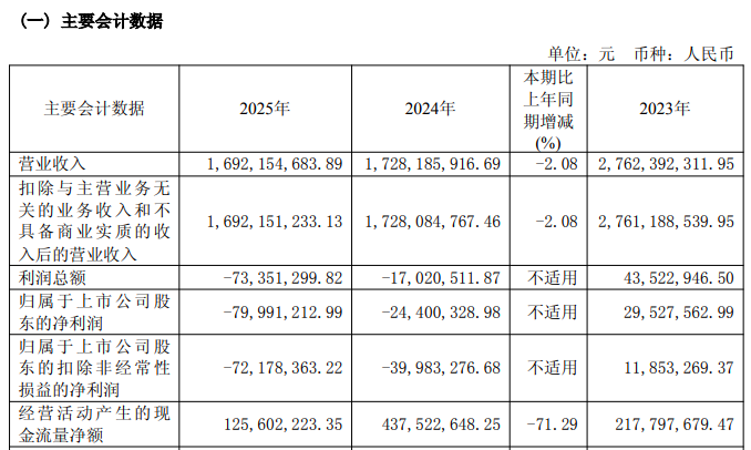 3月27日晚间,丽人丽妆(605136)发布2025年年报,2025年营业总收入 16.92亿元,同比减少2.08%;归母净利润亏损7999.12万元,上年同期净亏损2440.03万元,亏损显著扩大。
