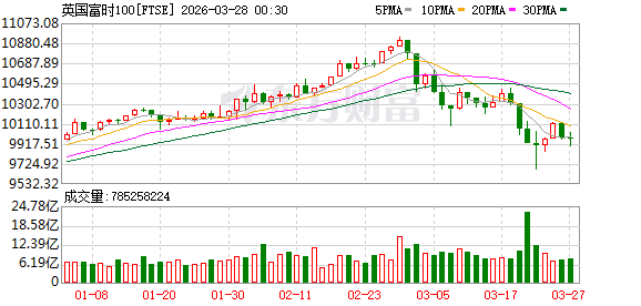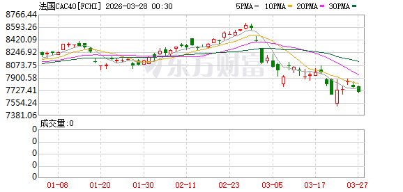 欧股市场:欧洲三大股指03月27日全线下跌。英国伦敦股市《金融时报》100种股票平均价格指数报收于9967.35点,较前一交易日下跌4.82点,跌幅为0.05%;法国巴黎股市CAC40指数报收于7701.95点,较前一交易日下跌67.36点,跌幅为0.87%;德国法兰克福股市DAX指数报收于22300.75点,较前一交易日下跌312.22点,跌幅为1.38%。
