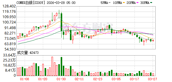 商品市场:国际油价03月27日上涨。截至当天收盘,纽约商品交易所WTI原油期货当月连续合约上涨6.70美元,收于每桶101.18美元,涨幅为7.09%。COMEX黄金期货当月连续合约上涨113.40美元,涨幅2.59%,报4489.7美元/盎司。COMEX白银期货当月连续合约上涨1.84美元,涨幅2.70%,报69.77美元/盎司。现货黄金上涨113.93美元,涨幅2.60%,报4492.74美元/盎司。现货白银上涨1.74美元,涨幅2.56%,报69.71美元/盎司。