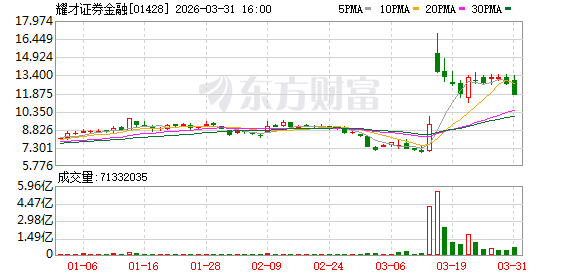今年3月9日,港股通标的调整生效,耀才证券金融被纳入港股通标的范围。3月13日,耀才证券金融放量飙升,盘中一度涨超40%,创近4个月以来新高。