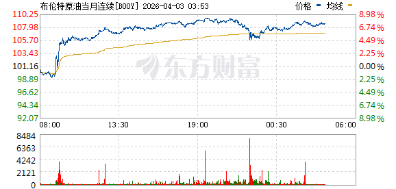 北京时间4月2日晚间,国际油价持续拉升。截至发稿,WTI原油期货涨逾12%,价格突破112美元/桶;布伦特原油期货涨超8%,价格逼近110美元/桶。