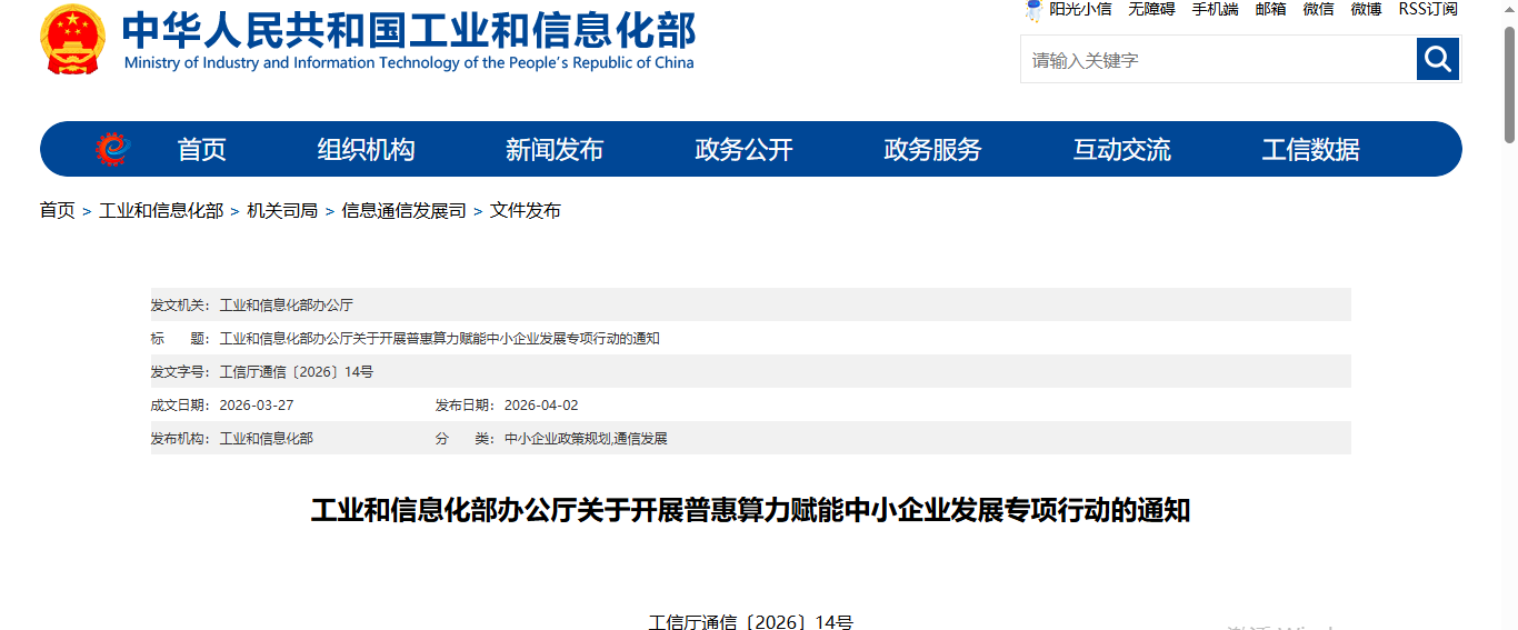 今日,工业和信息化部办公厅发布关于开展普惠算力赋能中小企业发展专项行动的通知。提出到2028年底,基本建成覆盖广、成本低、服务优、生态活、人才强的普惠算力服务体系,在中小企业划分标准适用的15类行业中覆盖门类不少于10类,进一步加强对中小企业算力应用的公共服务力度,显著降低中小企业获取、使用算力门槛。