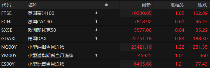 周二盘前,美股三大股指期货齐涨,欧洲主要指数普遍上涨。截至发稿,纳斯达克100指数期货涨1.22%,道指期货涨1.01%,标普500指数期货涨1.21%。