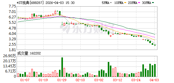 *ST观典(688287)也公告,公司于2026年4月3日收到中国证监会对公司下发的《立案告知书》。因公司涉嫌信息披露违法违规等,根据《中华人民共和国证券法》《中华人民共和国行政处罚法》等法律法规,中国证监会决定对公司立案。立案调查期间,公司将积极配合中国证监会的相关调查工作,并严格按照监管要求及时履行信息披露义务。