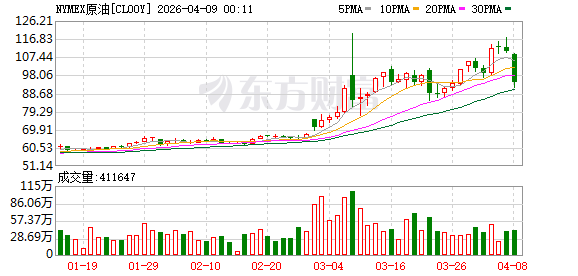 商品市场方面,消息称:巴基斯坦总理提议,特朗普宽限两周,伊朗开放霍尔木兹海峡两周。受此影响,国际油价由涨转跌,截至发稿,WTI原油跌0.29%,报112.06美元/桶;布伦特原油跌 2%,报106.76美元/桶。