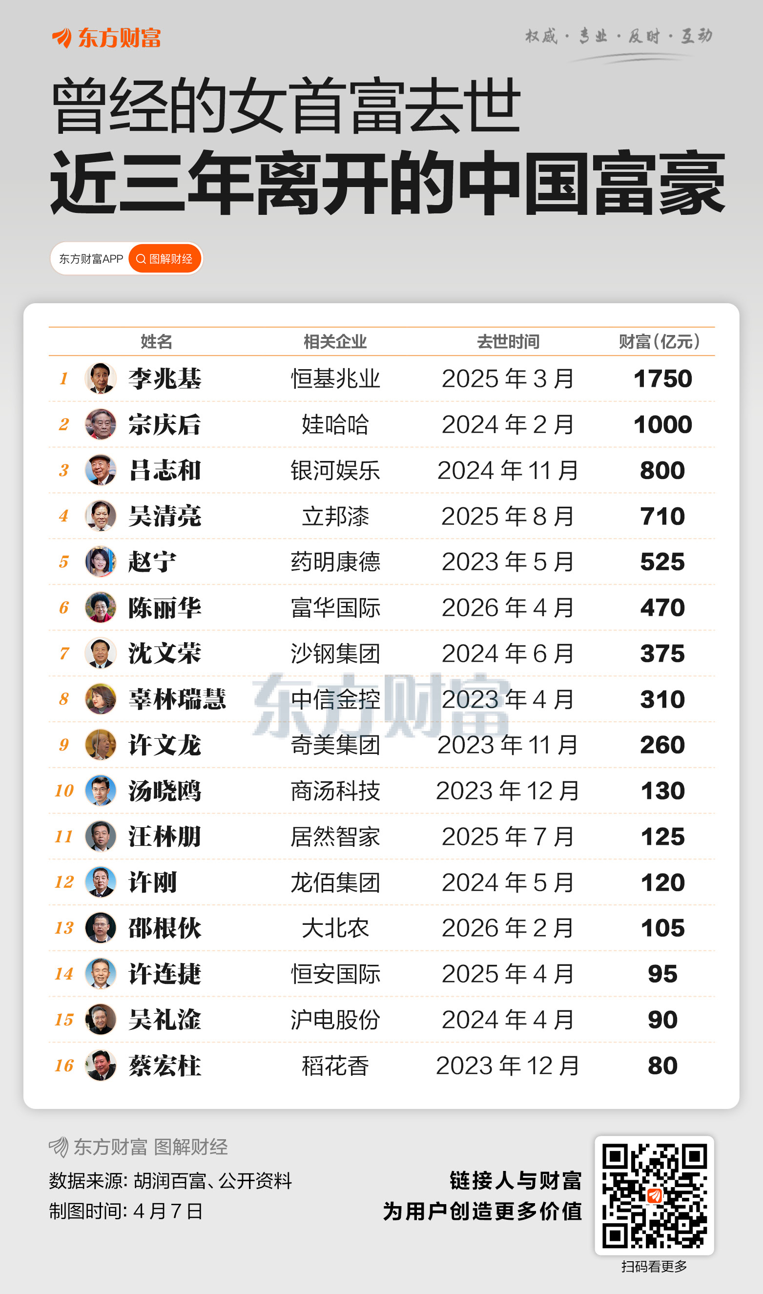 陈丽华的离世,也让近年企业家离世话题再度引发关注。据不完全统计,近三年来,国内至少有16位身家超十亿美金的企业家相继离世,均为各自行业的领军人物,覆盖了地产、消费、医药、科技、农业等多个领域。