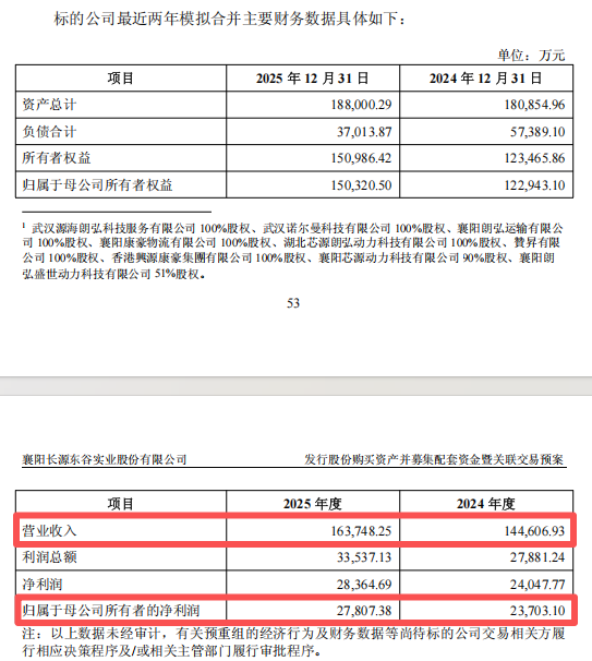 2024年、2025年,长源东谷的营业总收入分别为19.20亿元、22.55亿元,归母净利润分别为2.30亿元、3.89亿元。