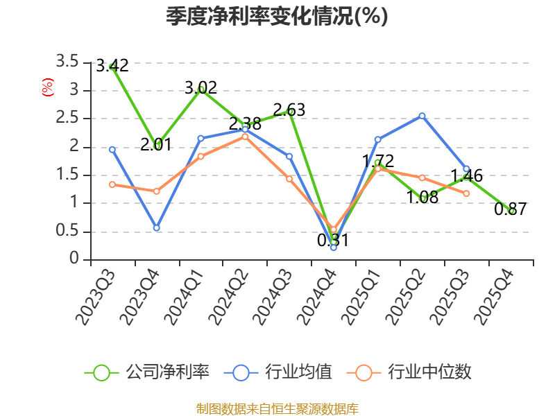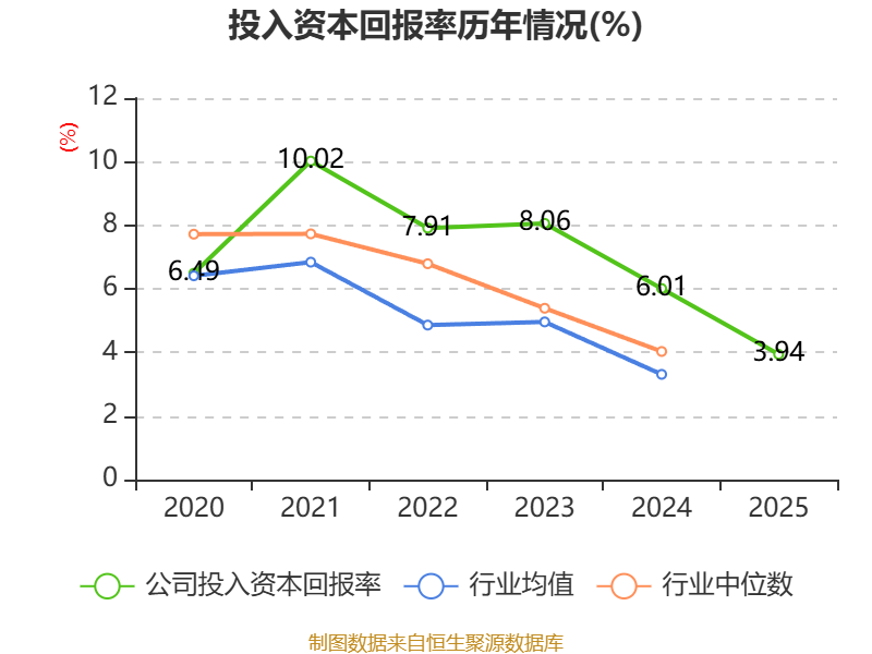 数据显示,2025年公司加权平均净资产收益率为4.54%,较上年同期下降3.01个百分点。公司2025年投入资本回报率为3.94%,较上年同期下降2.07个百分点。