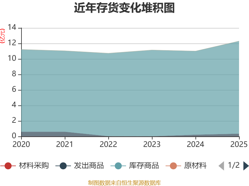 从存货变动来看,截至2025年末,公司存货账面价值为12.3亿元,占净资产的40.8%,较上年末增加1.29亿元。公司本期没有计提存货跌价准备。