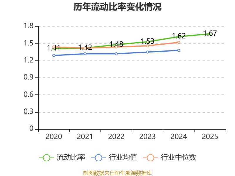 2025年,公司流动比率为1.67,速动比率为1.36。