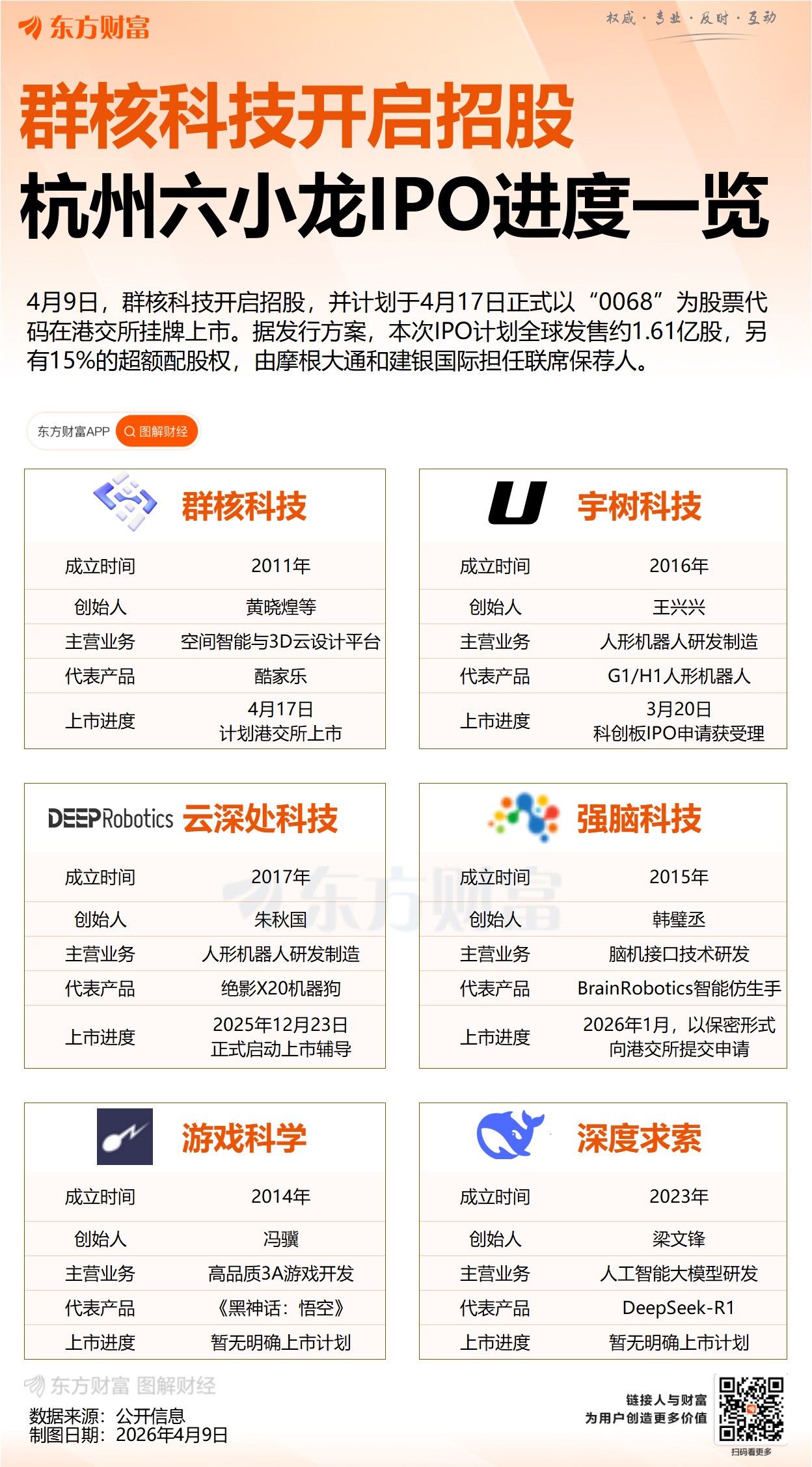 4月9日,“杭州六小龙第一股”群核科技启动全球招股,并计划于4月17日在港交所挂牌上市。