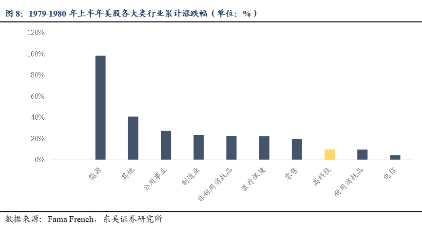 A股2022-2024年上半年的市场表现,在风格与行业层面与1973-1974年美股呈现一定呼应。当然,70年代首轮滞胀为全球实质性滞胀,而2022年以来A股更多呈现“类滞胀”交易特征,并非严格意义上的滞胀:其中“滞”对应国内经济增速走弱,“胀”则源于海外高通胀倒逼全球流动性收紧。但即便宏观背景存在差异,两者在市场风格与行业结构上仍展现出类似的运行特征: