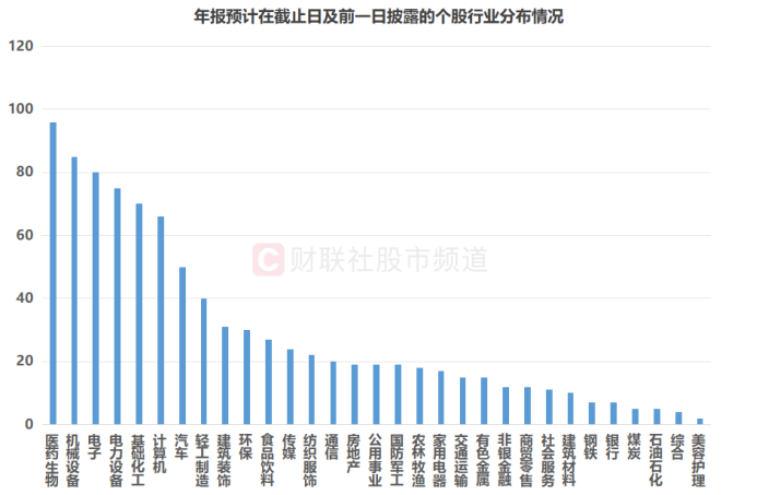 注:年报预计在截止日及前一日披露的个股行业分布情况(截至4月23日收盘)