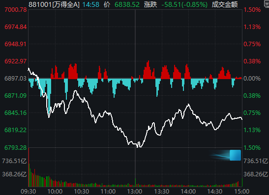 全市场近4100只个股下跌。沪深两市成交额2.8万亿元,较上一个交易日放量2447亿。