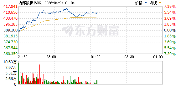 美股存储概念股走势分化,西部数据涨近6%,希捷科技涨超4%,美光科技、闪迪下跌。