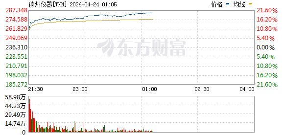 德州仪器盘中大涨逾19%,创下历史新高。美银将德州仪器评级从“中性”上调至“买入”,并将目标价从235美元上调至320美元。