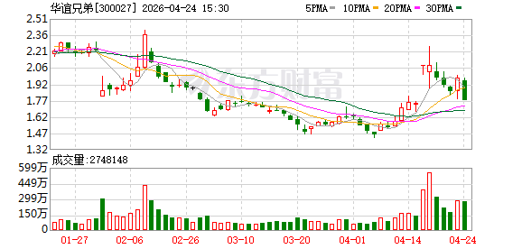 截至4月23日收盘,华谊兄弟的股价为1.97元/股,市值为54.7亿元。