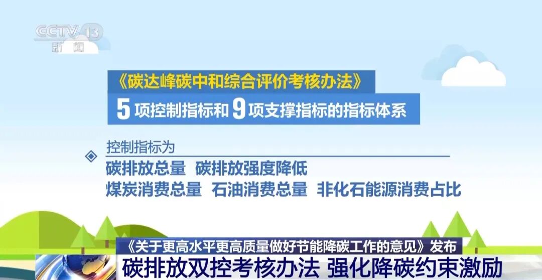 就在《关于更高水平更高质量做好节能降碳工作的意见》发布后不久,《碳达峰碳中和综合评价考核办法》也对外公布,这也让碳排放双控有了目标考核的“指挥棒”。
