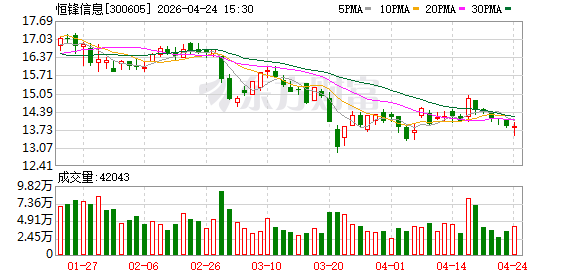 截至4月24日收盘,恒锋信息涨0.07%,报13.85元/股,总市值22.87亿元。