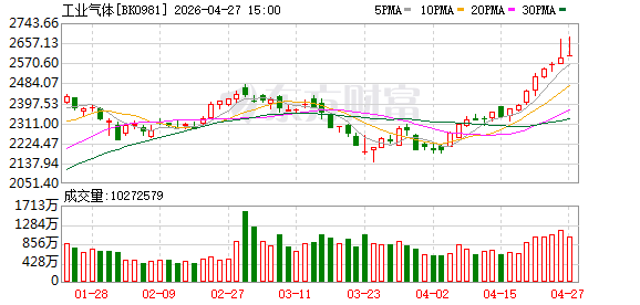 周一工业气体概念活跃,截至午间收盘,金宏气体涨超11%,广钢气体、诚志股份等涨超5%。