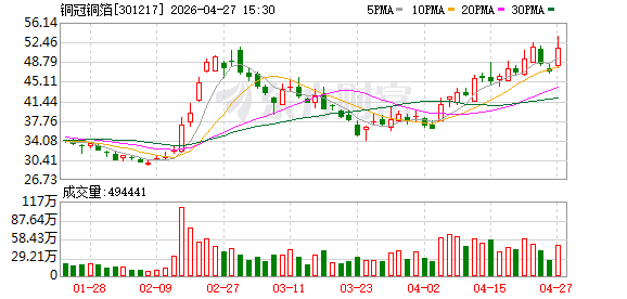 铜冠铜箔:第一季度净利润同比增长2138%,主要系铜箔产品售价上涨所致