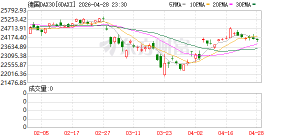 欧股市场:欧洲三大股指04月27日全线下跌。英国伦敦股市《金融时报》100种股票平均价格指数报收于10321.09点,较前一交易日下跌57.99点,跌幅为0.56%;法国巴黎股市CAC40指数报收于8141.92点,较前一交易日下跌15.9点,跌幅为0.19%;德国法兰克福股市DAX指数报收于24083.53点,较前一交易日下跌45.45点,跌幅为0.19%。