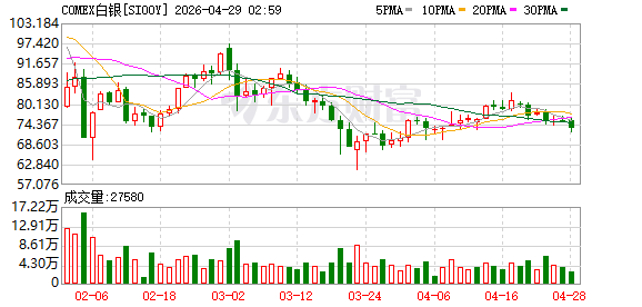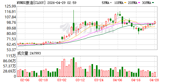 商品市场:国际油价04月27日上涨。截至当天收盘,纽约商品交易所WTI原油期货当月连续合约上涨2.28美元,收于每桶96.68美元,涨幅为2.42%。COMEX黄金期货当月连续合约下跌43.20美元,跌幅0.91%,报4697.7美元/盎司。COMEX白银期货当月连续合约下跌0.95美元,跌幅1.25%,报75.46美元/盎司。现货黄金下跌27.38美元,跌幅0.58%,报4681.87美元/盎司。现货白银下跌0.18美元,跌幅0.24%,报75.52美元/盎司。