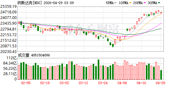 美股市场:美股三大指数04月27日收盘涨跌不一,纳指、标普续创历史新高。截至收盘,道琼斯工业平均指数比前一交易日下跌62.92点,收于49167.79点,跌幅为0.13%;标准普尔500种股票指数上涨8.83点,收于7173.91点,涨幅为0.12%;纳斯达克综合指数上涨50.5点,收于24887.1点,涨幅为0.2%。