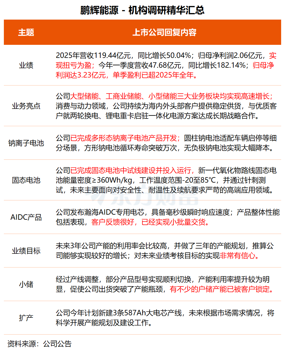鹏辉能源:AIDC产品已实现小批量交货 不少户储产能已被客户锁定