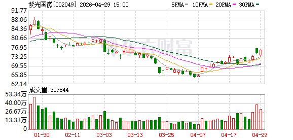 二级市场方面,紫光国微股价今日上涨1.95%,本月涨幅为14.90%。