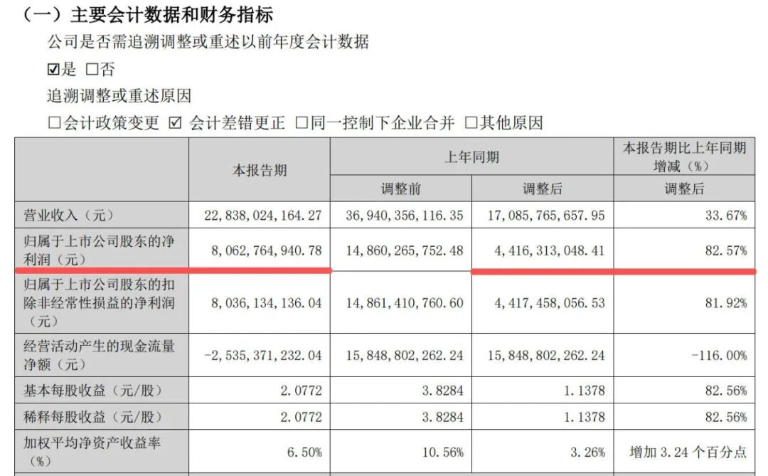 据五粮液同日披露的更新后的2025年一季报,期内调整后的营业收入为170.86亿元,归母净利润为44.17亿元。五粮液表示,公司对2025年业务模式进行梳理,基于谨慎性原则,调整2025年部分业务收入确认相关核算。