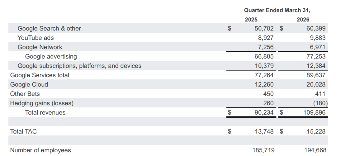 其他业务部门,包括Alphabet旗下的自动驾驶汽车公司Waymo,带来了4.11亿美元的收入——较去年同期的4.5亿美元有所下降。该公司高管表示,在该季度,Waymo每周的完全自动驾驶出行次数超过了50万次。