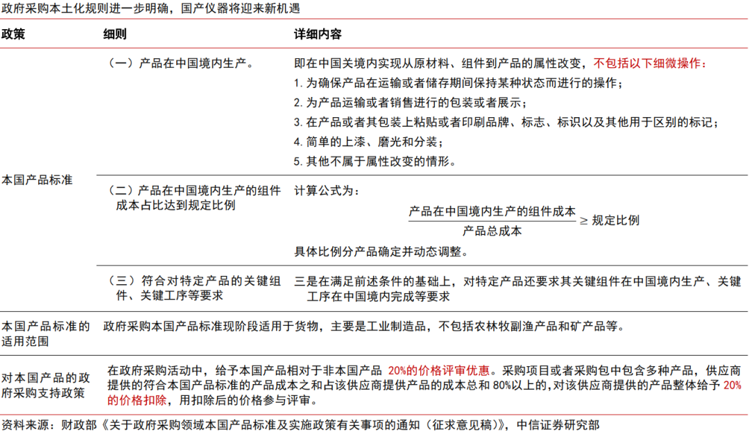 R&D经费增加叠加政策倾斜,精密仪器自主可控再迎良机。根据国家统计局数据,2023年全国共投入研究与试验发展(R&D)经费3.33万亿元,位列世界第二。根据OECD数据库,世界主要创新型国家基础研究投入占全部研发经费投入的比重保持在15%至20%之间,我国仅为6.77%,基础研究投入还有很大提升空间。2024年12月5日,财政部发布了《关于政府采购领域本国产品标准及实施政策有关事项的通知(征求意见稿)》,本国产品有望获得20%的价格优惠,助力国产仪器加速成长。