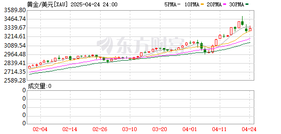 周一(4月21日)纽约时段,现货黄金价格加速走强,于北京时间19:40左右突破3400美元大关,创下了新的历史纪录。
