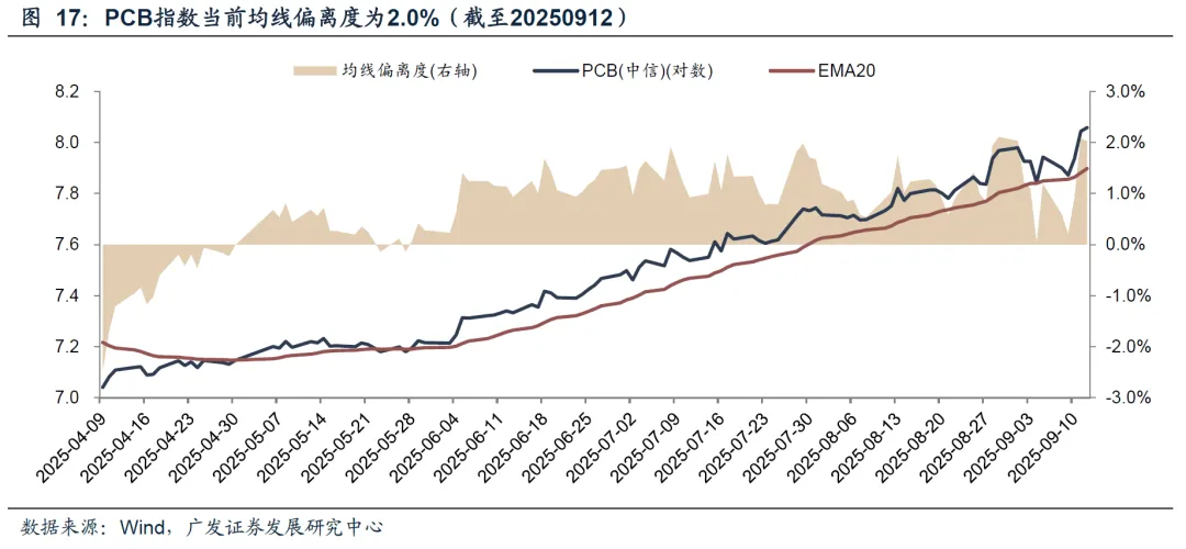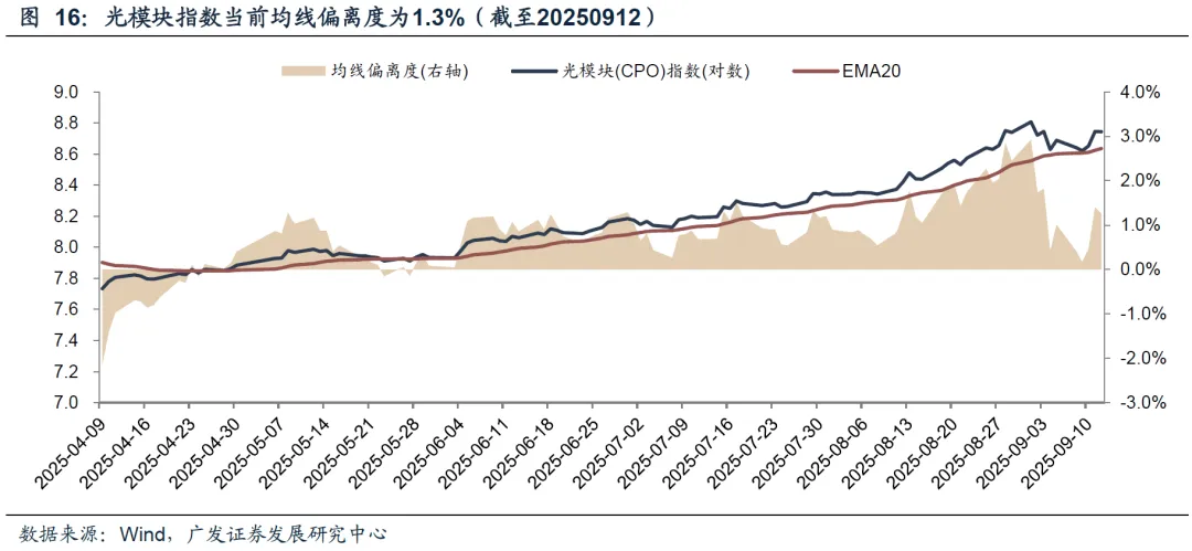光模块、PCB、创新药、科创芯片几条典型主线当下均线偏离度分别为1.3%、2.0%、0.1%、1.2%,当前主线均未释放止损信号。