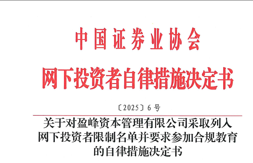 今年4月,中证协官网也发布自律措施决定书称,盈峰资本因在IPO打新时存在未审慎报价、定价依据不充分等违规行为,被限制网下打新6个月,并被要求参加合规教育。