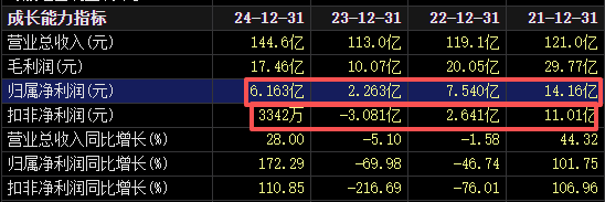 2021年到2024年,华天科技营业收入保持缓慢增长,从121亿元增长至144.6亿元;但净利润呈下降趋势,从14.16亿元降至6.16亿元;如果扣除非经常性损益,净利润则从11亿元跌到了3342万元,其中2023年扣非净利还亏损了3.08亿元。
