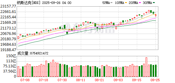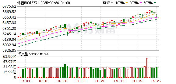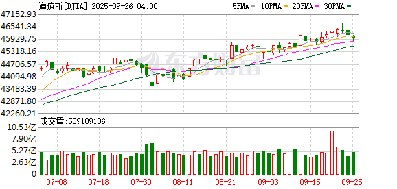 美股市场:美股三大指数09月24日收盘全线下跌。截至收盘,道琼斯工业平均指数比前一交易日下跌171.5点,收于46121.28点,跌幅为0.37%;标准普尔500种股票指数下跌18.95点,收于6637.97点,跌幅为0.28%;纳斯达克综合指数下跌75.61点,收于22497.86点,跌幅为0.33%。