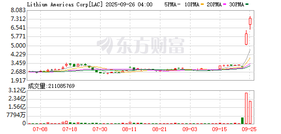 个股方面,美洲锂业公司(Lithium Americas)收涨超95%,报道称美国政府寻求获得美洲锂业公司(Lithium Americas)高达10%的股份。
