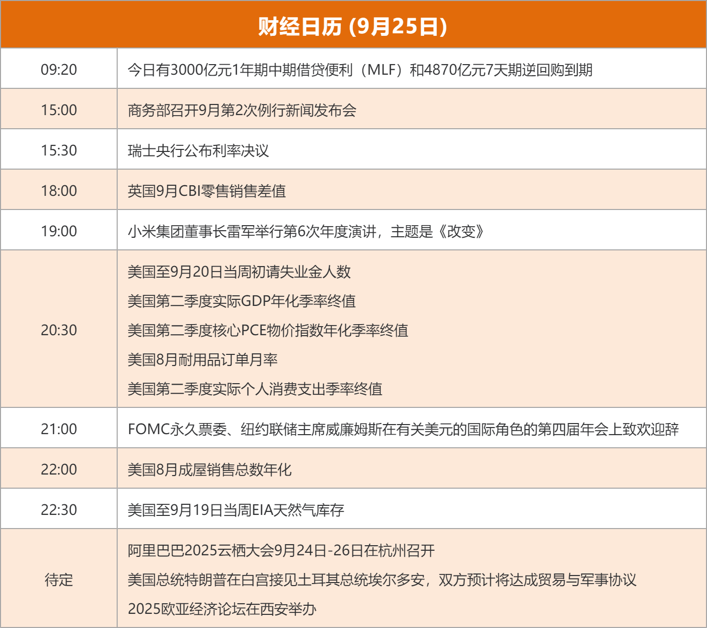 为保持银行体系流动性充裕,2025年9月25日(周四),中国人民银行将以固定数量、利率招标、多重价位中标方式开展6000亿元MLF操作,期限为1年期。中期借贷便利(MLF)连续7个月加量续作。