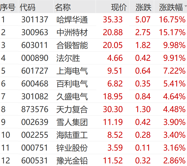另外,9月25日上午,核聚变概念股集体走强。合锻智能、法尔胜先后涨停,哈焊华通、中洲特材涨超10%,上海电气、百利电气等跟涨。
