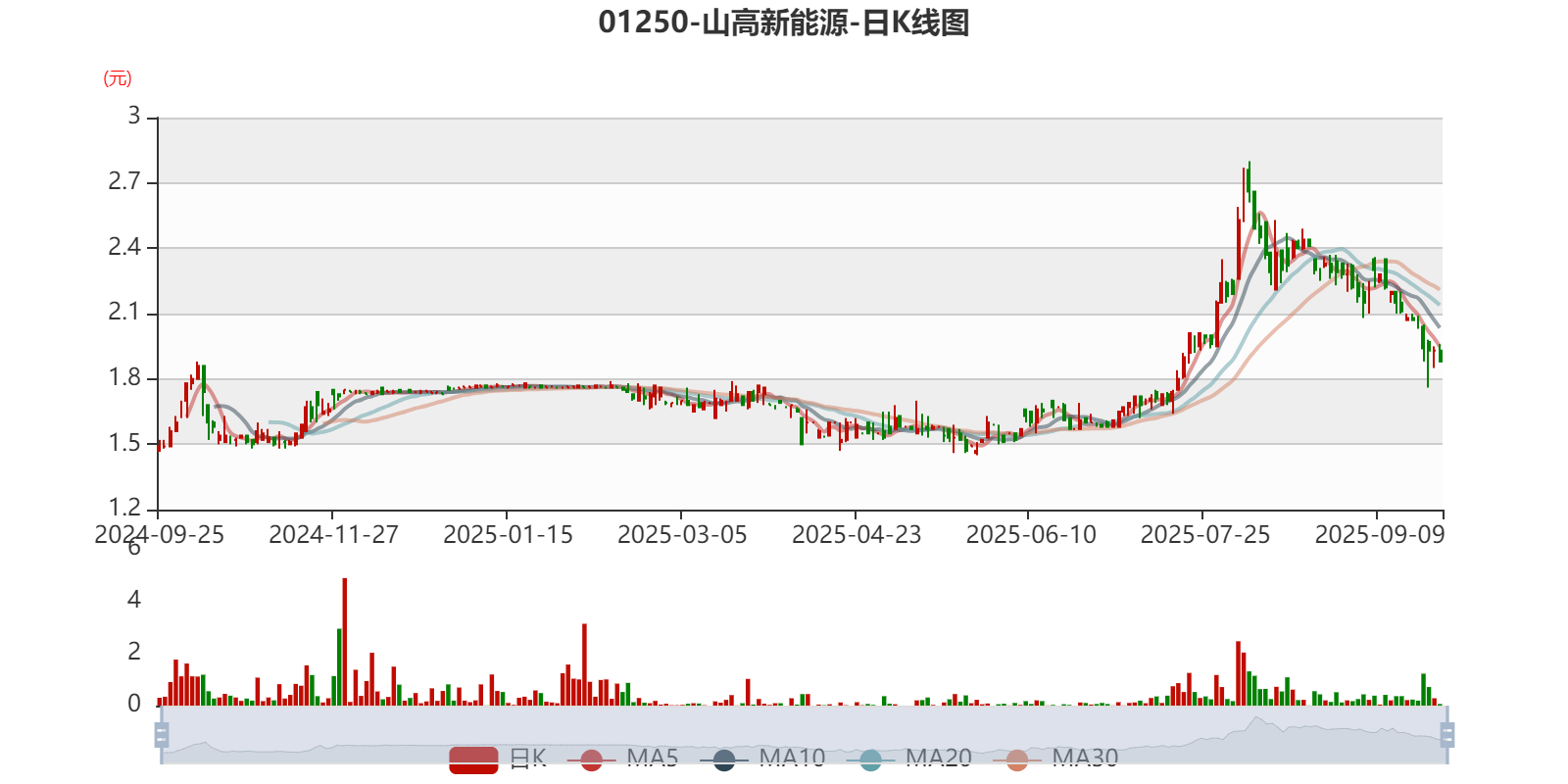 以9月24日收盘价计算,山高新能源目前市盈率(TTM)约13.05倍,市净率(TTM)约0.29倍,市销率(TTM)约0.87倍。