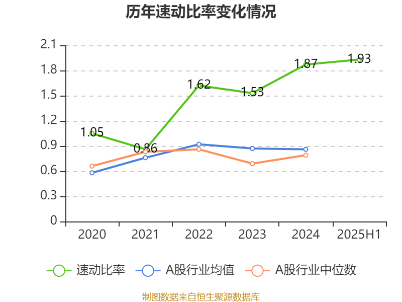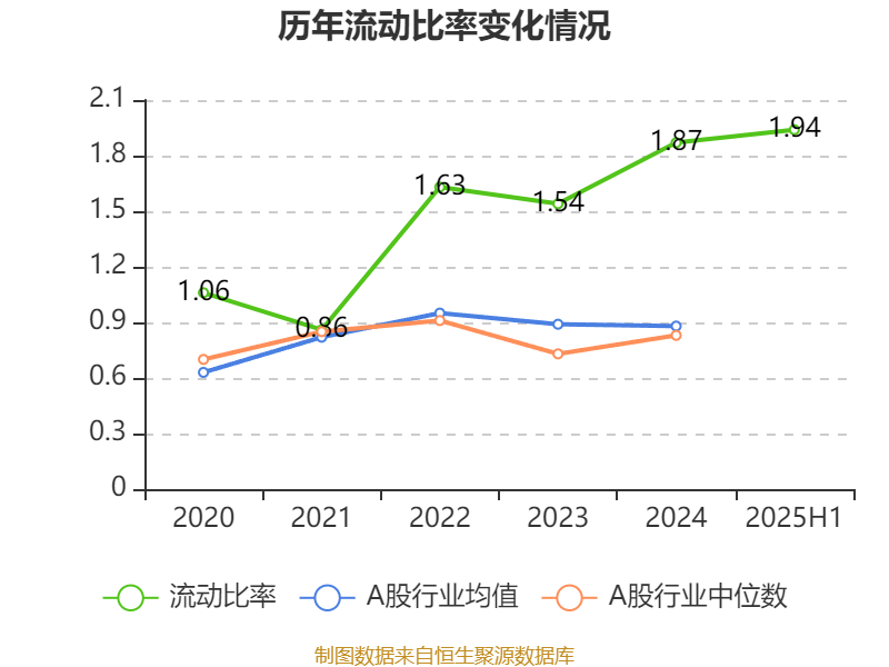 2025年上半年,公司流动比率为1.94,速动比率为1.93。