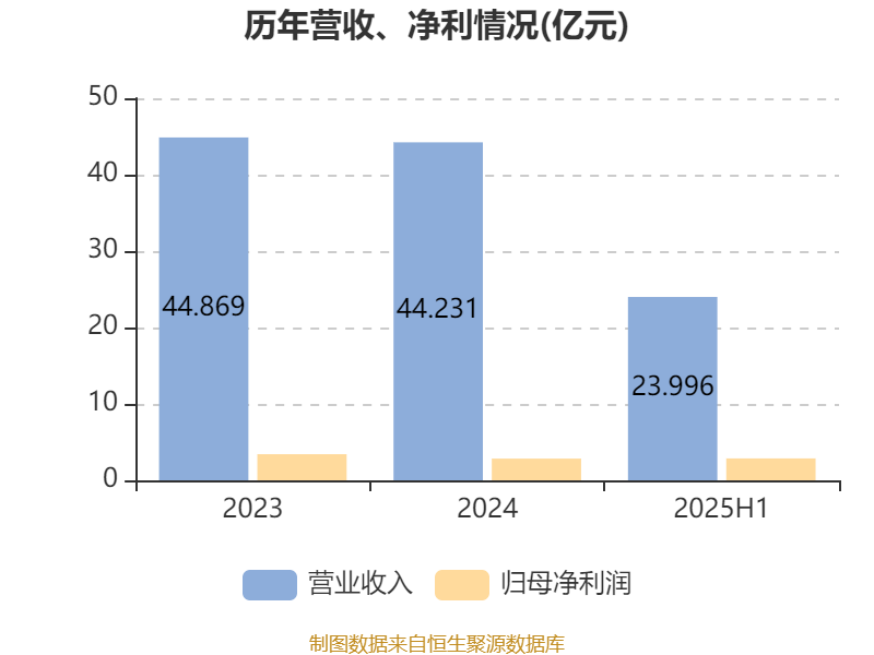 中证智能财讯山高新能源(01250)9月25日披露2025年中期报告。报告期内,公司实现营业收入24亿元,同比下降0.22%;归母净利润2.87亿元,同比增长3.96%;据报告显示,山高新能源基本每股收益为0.1277元,平均净资产收益率为2.16%。
