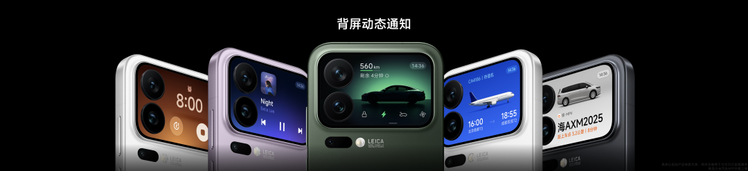 值得一提的是,小米17 Pro系列推出了一种名为“妙享背屏”的设计,即手机背面是一款可以真正使用的第二屏幕,用户可以在上面设置各种有趣的时钟、AI壁纸、背屏动态通知、背屏自拍、玩小游戏等。