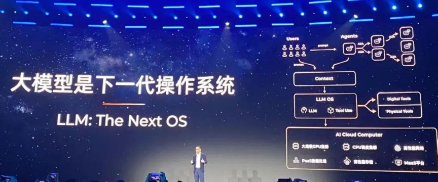 9月24日的演讲中,吴泳铭还给出了「大模型是下一代操作系统」和「AI Cloud是下一代计算机」两个核心判断。「未来模型将运行在所有计算设备中,并具备可持久记忆、端云联动的运行状态,甚至可以随时更新参数、自我迭代,类似我们今天的OS运行在各种环境之中。」他说,正是基于这个判断,通义千问模型当初选择了开源路线,目标是「打造AI时代的Android」,而阿里云的目标是「全力打造一台全新的AI超级计算机」。